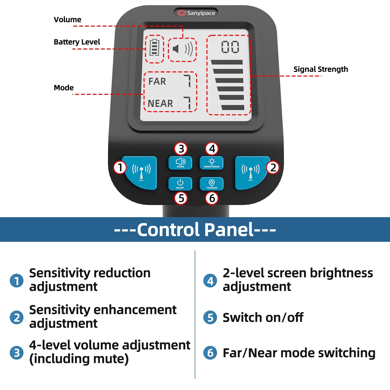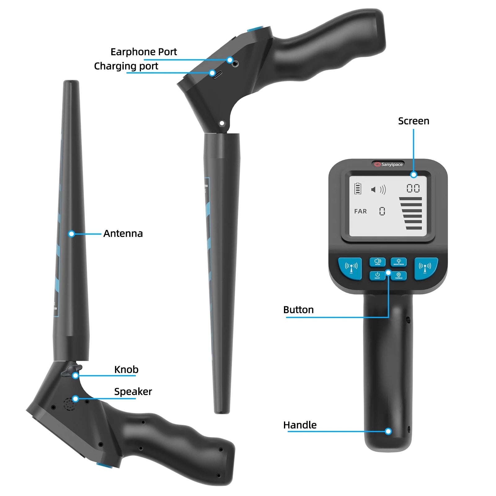 โก Press the โSEN+โ button to adjust the sensitivity to the maximum value (7). Hold the receiver and slowly sweep it back and forth within the approximate transmitter location. The closer you are to the exact transmitter location, the stronger the signal will be; otherwise, it will become weaker.