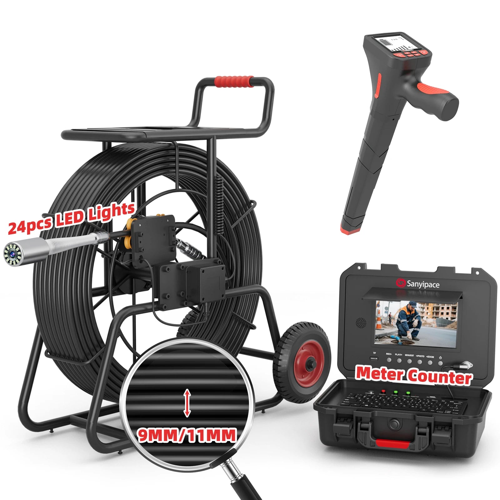 The Sanyipace sewer camera is equipped with a built-in 512Hz transmitter sonde, designed to emit a 512Hz signal whenever the drain camera is in operation. By pairing with any brand 512Hz locator/receiver, plumbers can precisely pinpoint the camera head’s location during underground pipe and plumbing inspections, ensuring faster and more accurate diagnostics. Drain Camera with foot/meter counter automatically displays the current length of cable in the tube, greatly helping to locate the issue area accurately. The combination of a 512Hz transmission signal, a 512Hz locator, and a meter counter will make pipeline inspection more efficient.