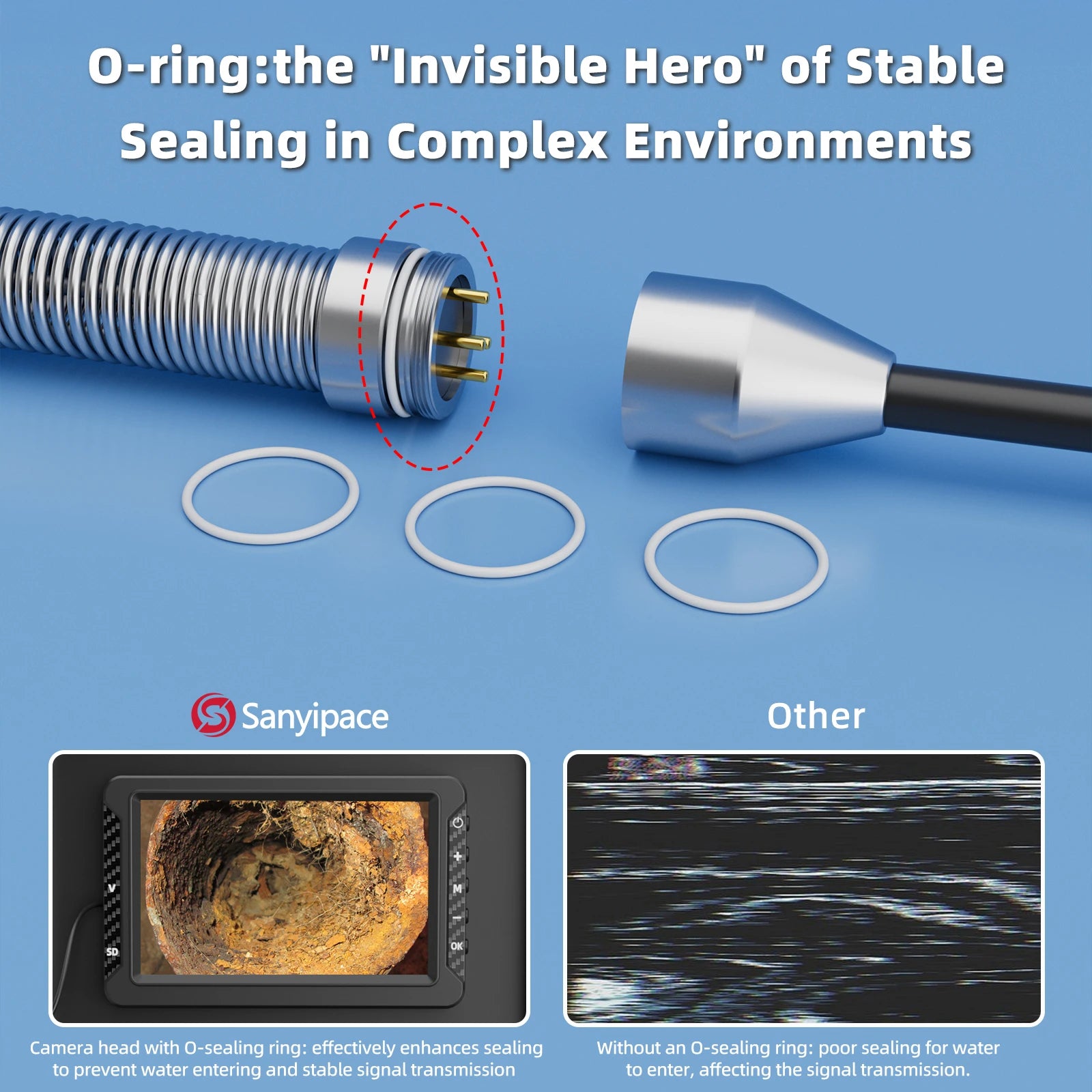 With an O-ring in the plumbing camera head, be waterproof without worry! Although the O-ring is inconspicuous, it is the core of the plumbing camera's sealing performance. The sewer camera head O-ring is made of high-strength rubber material, it has excellent heat resistance, pressure resistance, and corrosion resistance, and is not prone to aging after long-term use. In complex and humid pipeline environments, it can continuously provide reliable protection to ensure the stable operation of the equipment. The plumbing camera head O-ring is a key component for waterproofing and dustproofing! Installed at the joint between the sewer coil and the camera head, it can firmly prevent water and dust from entering the camera head interior and is the "gatekeeper" to ensure the normal operation of the plumbing camera head. Tips: Please pay attention to wearing an O-ring when using.