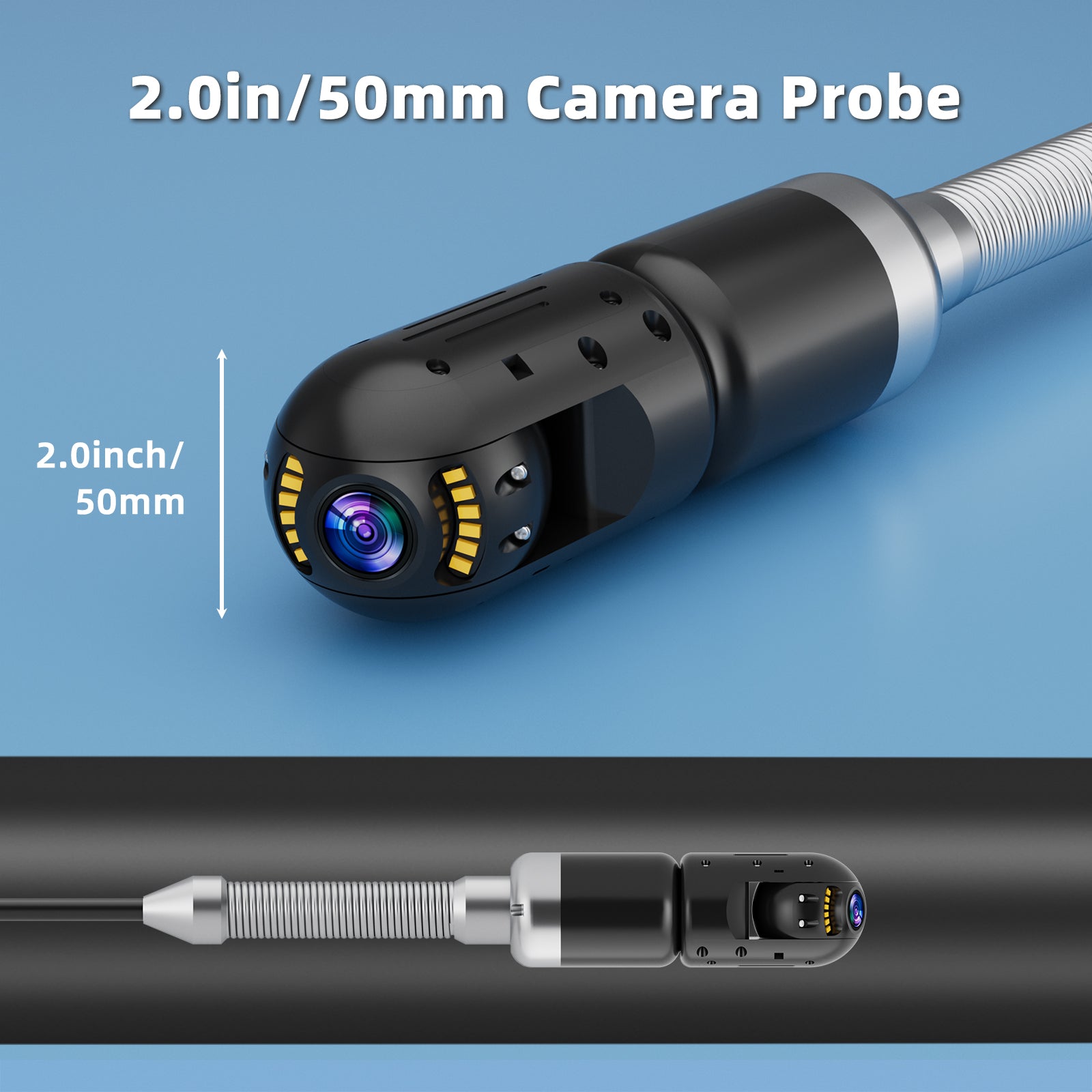 With a sleek 50mm (2.0 inch) diameter, the plumbing camera head is compact enough to navigate through narrow pipes and bends with ease. The sewer camera head standard size allows it to be adapted with pulley accessories, enhancing stability and enabling smoother gliding through long or uneven pipelines. Whether you're inspecting residential drains or industrial systems, this adaptable design ensures efficient movement and reduced friction. Quick installation greatly improves usage efficiency.