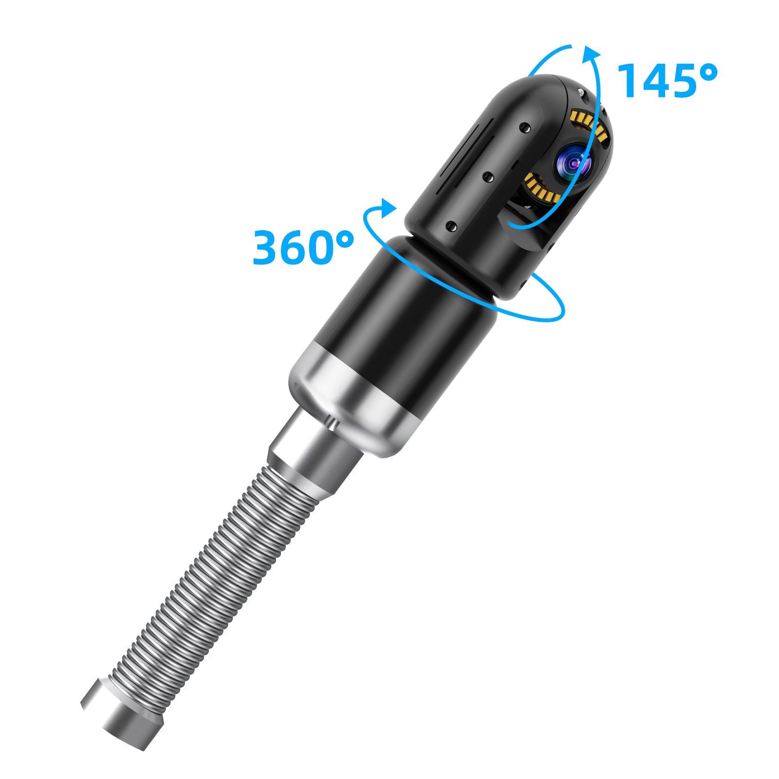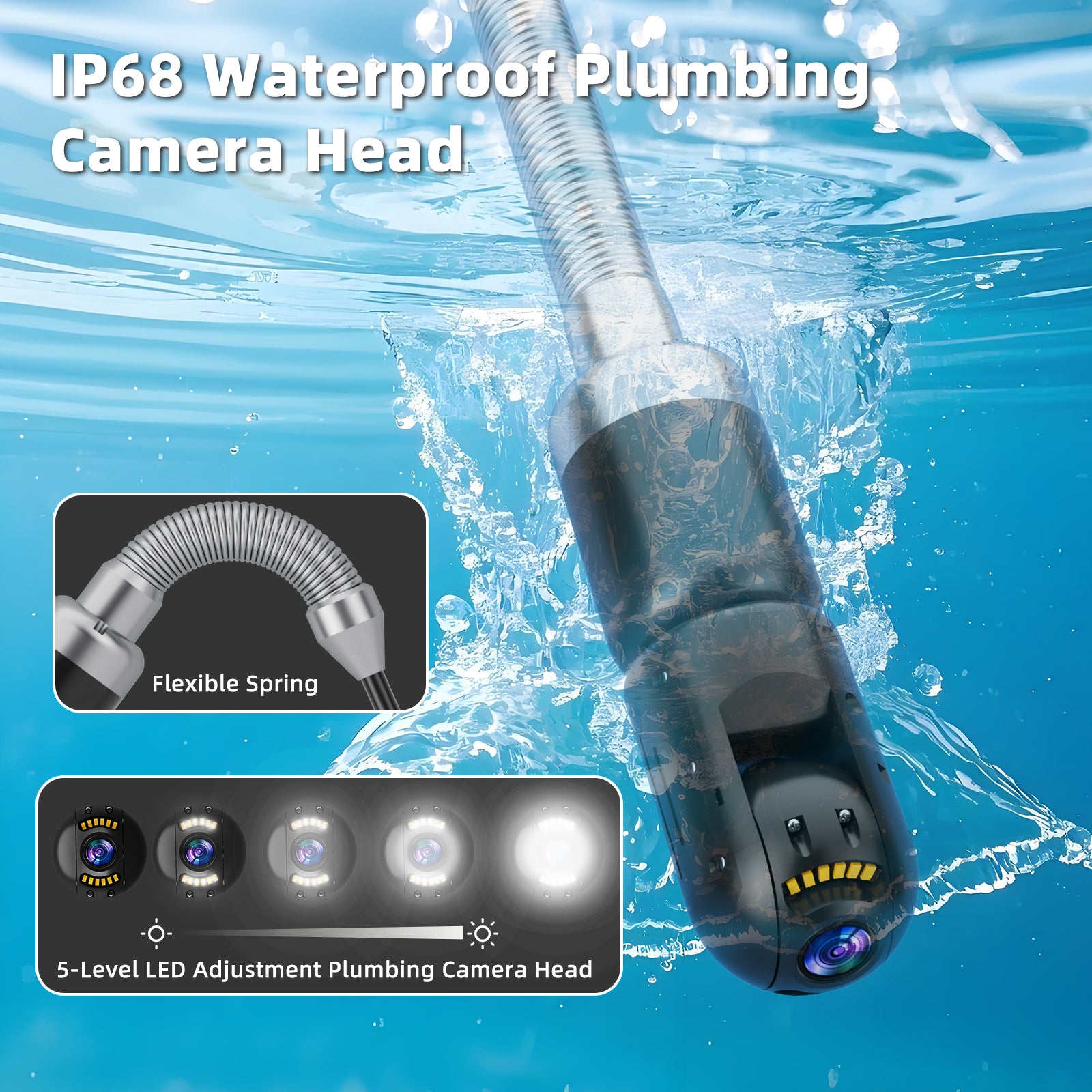 A durable IP68 Waterproof plumbing Camera Head can ensure protection against dust and water ingress. Sewer camera head equipped with 12 pieces of adjustable LED lights provides powerful, customizable illumination. The flexible Spring plumbing camera head is mounted on a flexible, high-tension spring, allowing it to smoothly navigate through 90-degree bends. This flexibility enhances maneuverability while reducing the risk of jamming in complex pipeline systems.